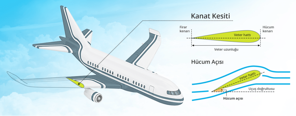 - Kaldırma Kuvveti : Uçağın kanatlarından elde edilen güç ve kuvvet ile uçağın havalanması ve havada kalması sağlanır.